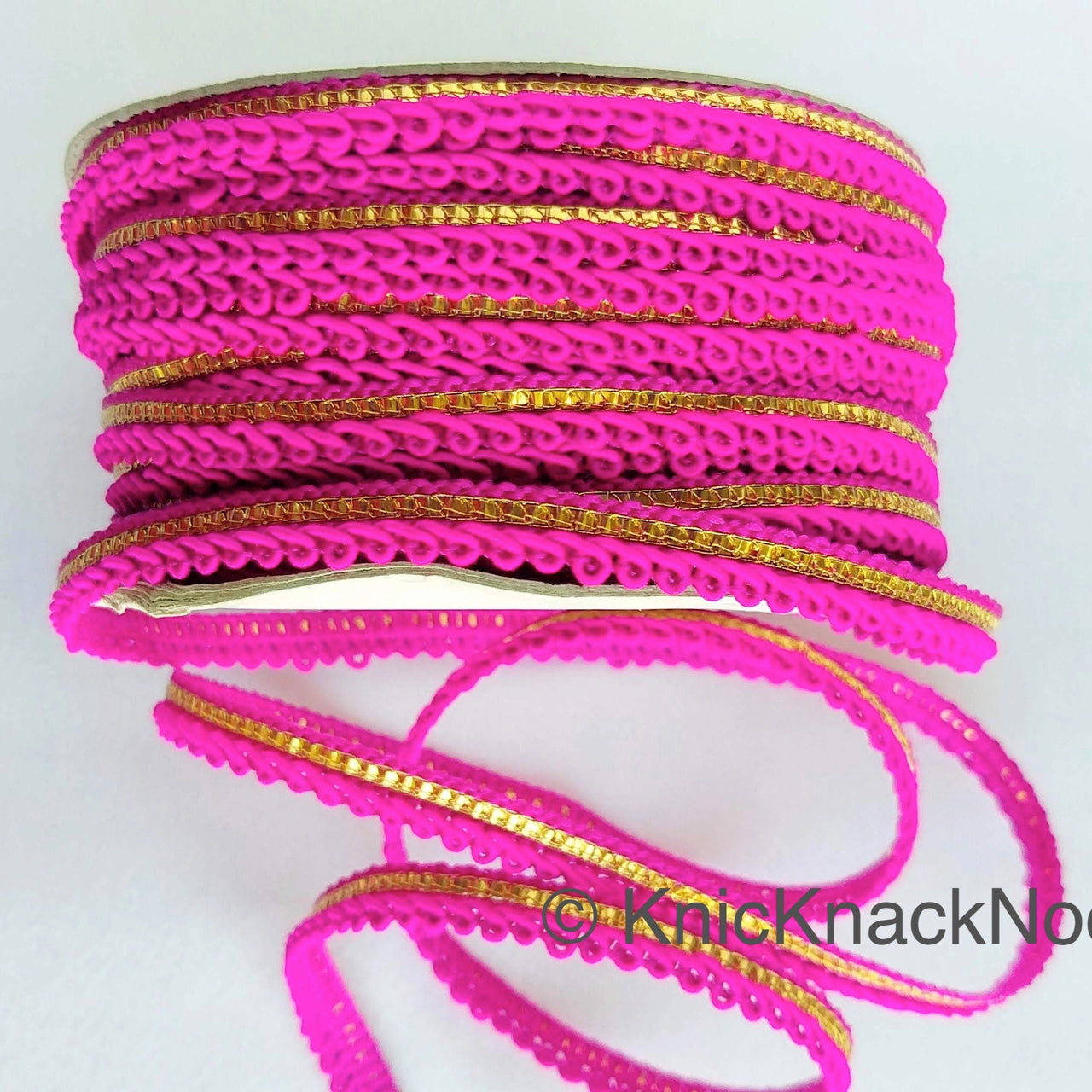 Fuchsia Pink And Gold Gimp Trim, Approx. 8mm wide, Upholstery Trim