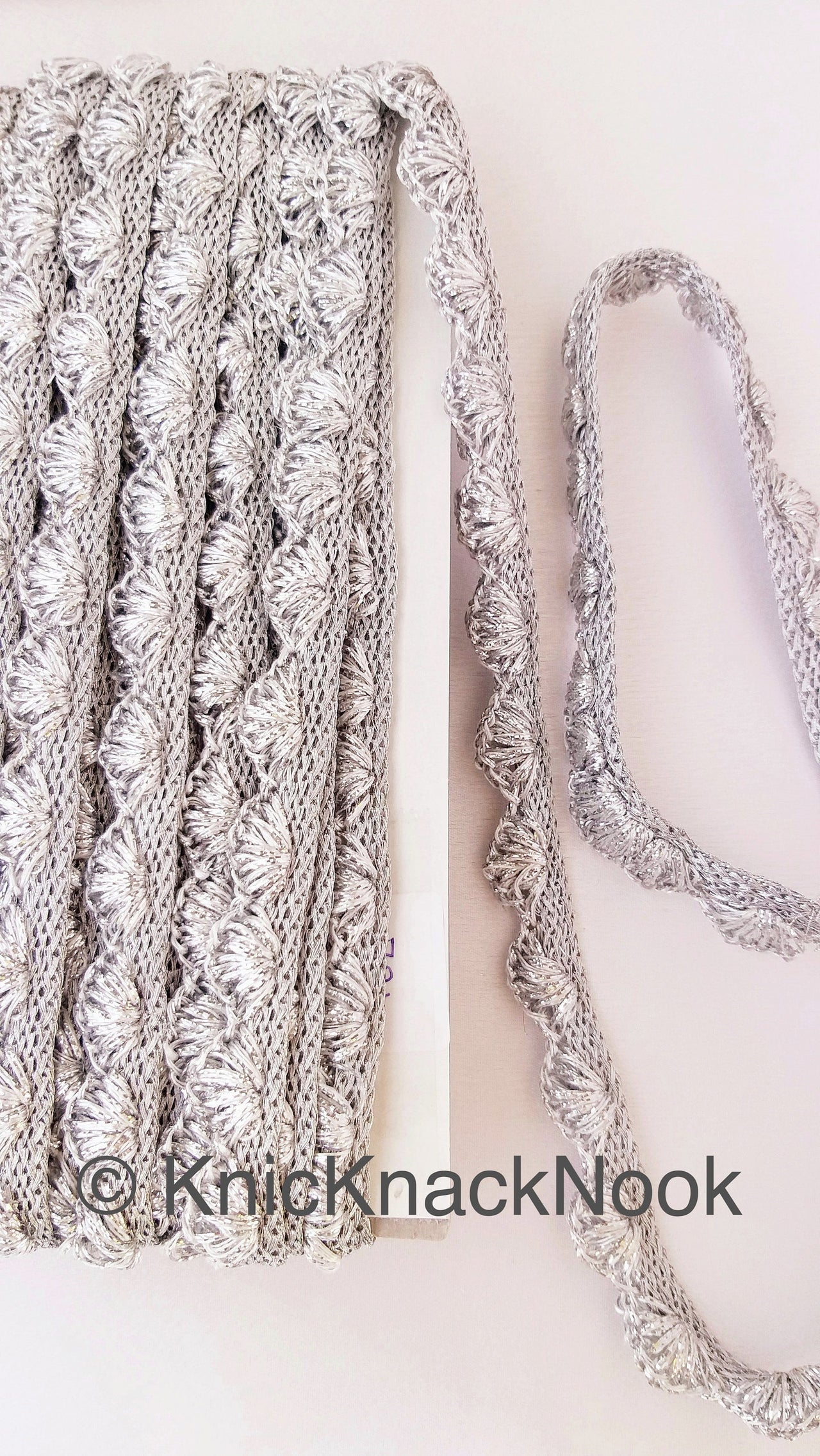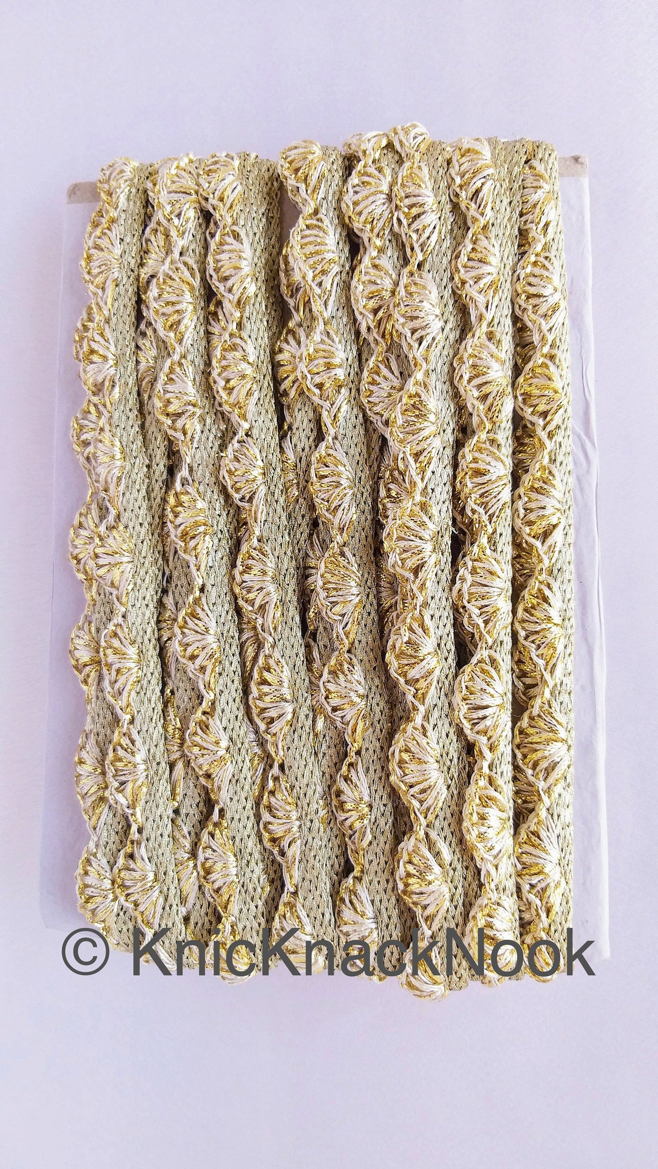 Gold / Silver Shimmer Shell Pattern Scallop Thread Trim With Sequins, Approx. 15mm, Thread Trim