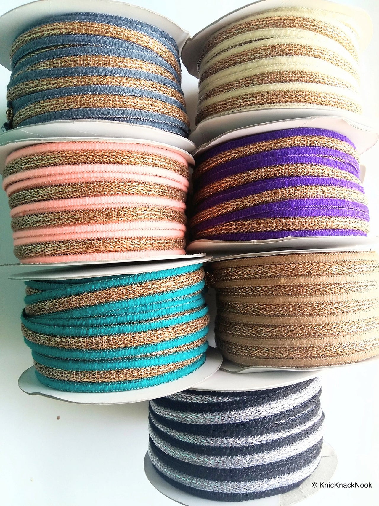 Purple And Gold Thread Lace Trim, Approx. 14mm wide - 200317L224
