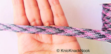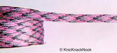 This listing is for a lovely Pink / Silver, Black And Grey Thread Lace Trim, Basket Weave, Friendship Bracelet.