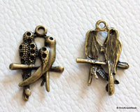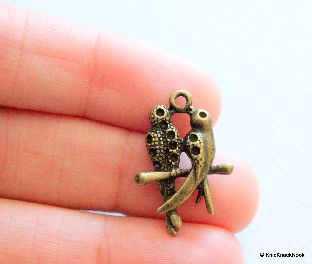 5 x Zinc Alloy Bronze Tone Parrot Pair Charm Pendants 24mm x 11mm