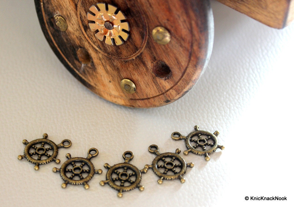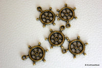 5 x Zinc Alloy Bronze Tone Ship's Wheel Charms Pendants 20mm x15mm