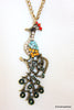 Butterfly Bronze Tone with Brown Facet Beads and Rhinestones Pendant Necklace