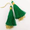 Cyan Blue Tassels With Gold Beads, Beaded Thread Tassel Charms, Silky Tassels