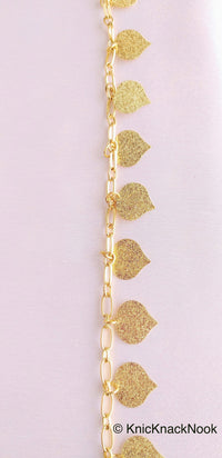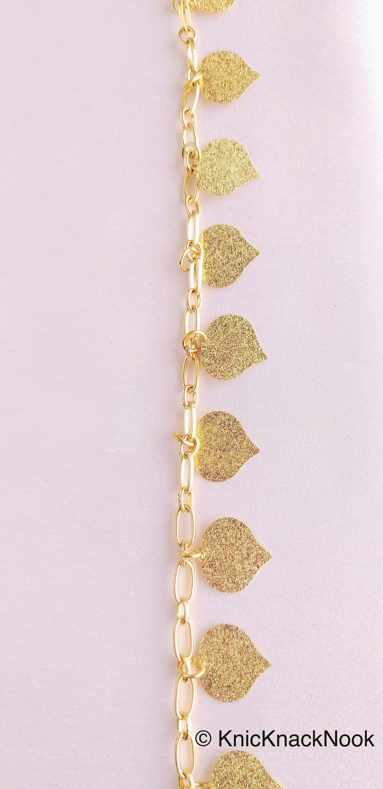 Gold Chain Metal Trim, Metallic Chain with Gold Shimmer Leaf Charms, Beaded Bohemian trim