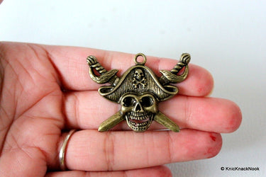 This listing is for 2 x Zinc Alloy Bronze Tone Pirate Skull charms/ pendants for jewelry making, scrap booking, making mobile phone charms or sewing onto garments.