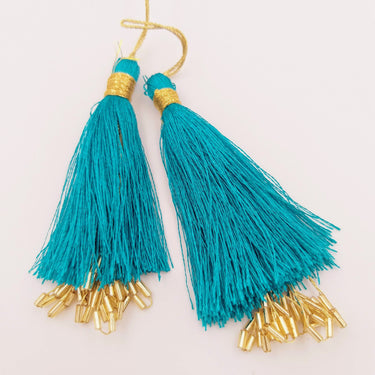 This listing is for a lovely Cyan Blue Tassels With Gold Beads, Beaded Thread Tassel Charms, Nylon Tassels.