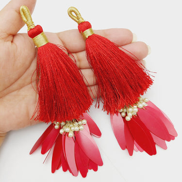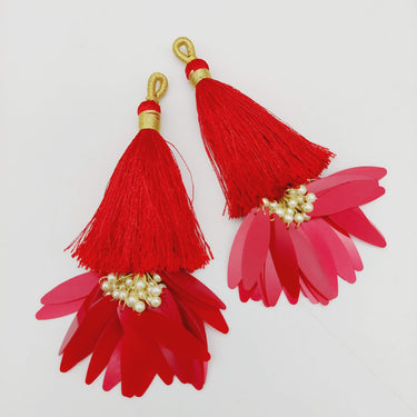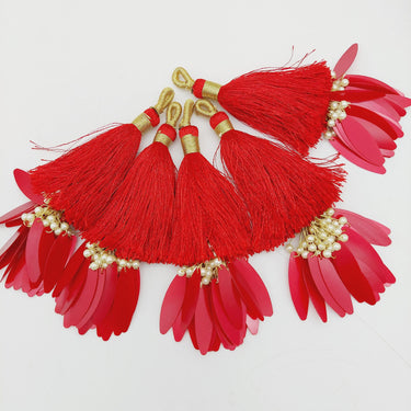 This listing is for a lovely Red Tassels With Long Sequins And Seed Pearl Beads, Beaded Thread Tassel Charms, 2 Pcs.