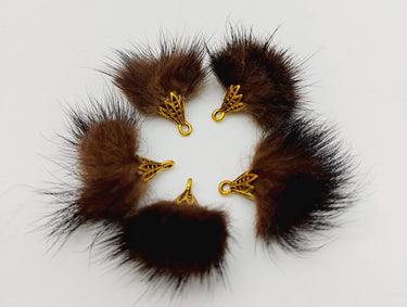 This listing is for a lovely Brown Artificial Feather Fur Tassel With Brass Cap in Antique Gold Colour x 2