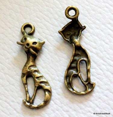 5 x Zinc Alloy Bronze Tone Cat Cha...