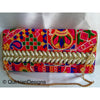 The embroidery on this trim is called Zardozi, an exclusive type of embroidery that is done by hand. Zardozi comes from two Persian words: zar or zarin meaning 'gold', and dozi meaning 'sewing'. Zardozi is a type of heavy and elaborate metal embroidery on a silk, satin, or velvet fabric base.