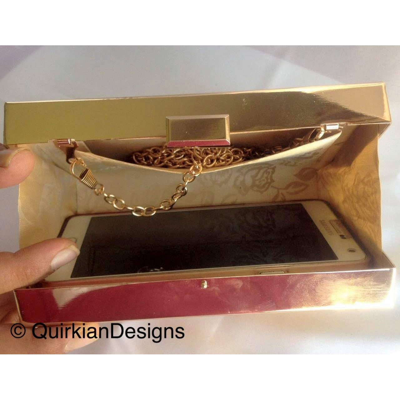 Gold Purse With Gold Hard Body Box Clutch Bag, Party Clutch, Evening Clutch