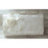 Wedding Party Clutch, Hard Body Purse, White Fabric Purse With Grey Flower Applique