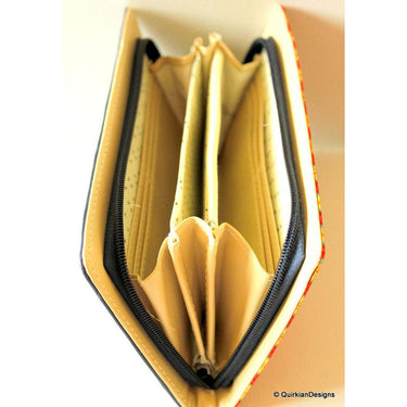 This clutch is hand stitched by me. It is made from Yellow fabric and I have lined the front of the purse with Gold Fabric. It is an ideal purse for daily use.
