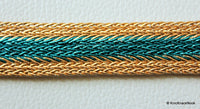 Blue And Gold Woven Thread Lace Trim With Mirror And Rhinestone Embellishments, Approx. 18mm Wide Decorative Trim Crafting Trimming