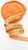 The embroidery on this trim is called Zardozi, an exclusive type of embroidery that is done by hand. Zardozi comes from two Persian words: zar or zarin meaning 'gold', and dozi meaning 'sewing'. Zardozi is a type of heavy and elaborate metal embroidery on a silk, satin, or velvet fabric base.