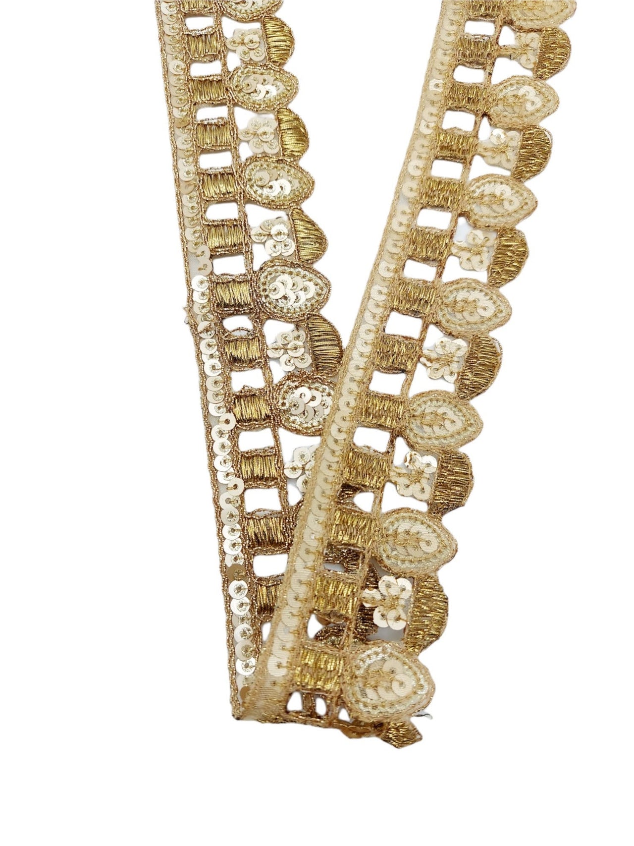 This listing is for a stunning Gold Zardozi Hand Embroidered Cutwork Lace Trim Beaded with Ivory Seed Beads, Wedding Saree Border Trim, Indian Trim, Wedding Trim, Bridal. This is a very unique trim and would make any creation stand out.