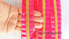 The embroidery on this trim is called Zardozi, an exclusive type of embroidery that is done by hand. Zardozi comes from two Persian words: zar or zarin meaning 'gold', and dozi meaning 'sewing'. Zardozi is a type of heavy and elaborate metal embroidery on a silk, satin, or velvet fabric base.
