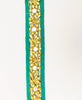 The embroidery on this trim is called Zardozi, an exclusive type of embroidery that is done by hand. Zardozi comes from two Persian words: zar or zarin meaning 'gold', and dozi meaning 'sewing'. Zardozi is a type of heavy and elaborate metal embroidery on a silk, satin, or velvet fabric base.