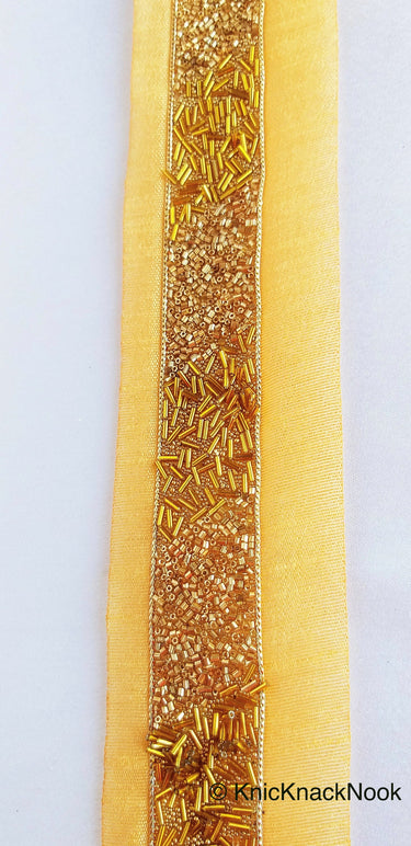 This listing is for a stunning Beige Fabric Trim With Gold Seed Beads, Bugle Beads And Pipe Beads Embellishments, Beaded Trim, Saree Border. This is a very unique trim and would make any creation stand out.