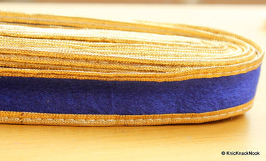 This listing is for a lovely Blue Velvet Trim Ribbon WIth Gold Border Piping.