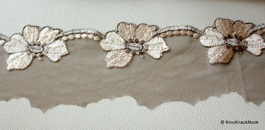 This listing is for a lovely Grey Net Lace With Flowers Embroidery.
