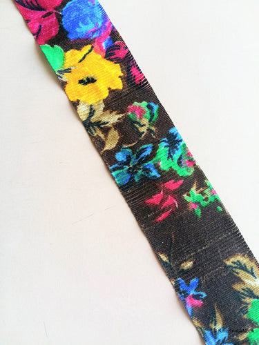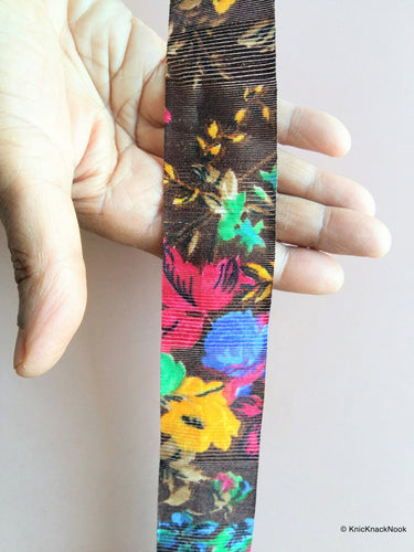 This listing is for a lovely Brown Bhagalpuri Silk Fabric Trim With Pink, Green, Blue And Yellow Floral Designs.
