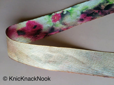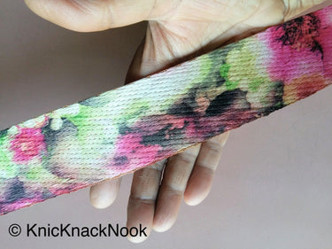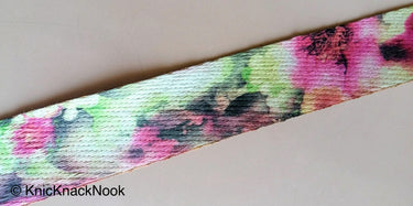 Beige, Pink, Green and Brown Print Floral Fabric Trim, Printed Trim.