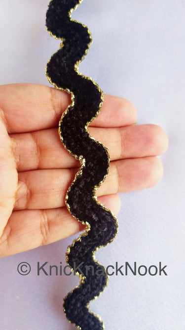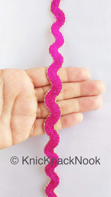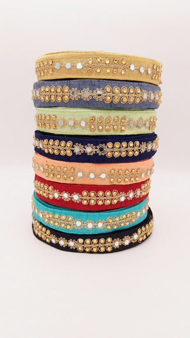 This listing is for a lovely Lime Green / Beige / Pink / Black / Green / Magenta / Blue / Red Faux Velvet Trim With Gold Border Piping, Approx. 15mm, One Yard Trim.