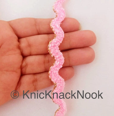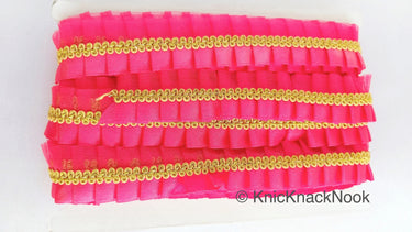 This listing is for a lovely Watermelon Red Satin And Watermelon Red Net Fabric Trim With Gold Embroidery Trimming, Pleated Lace Trim, Saree Border Trim.
