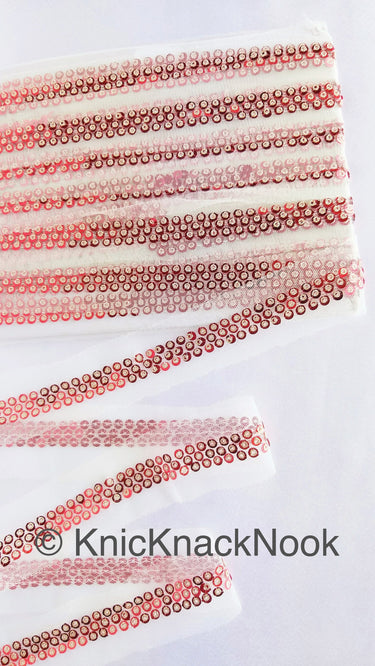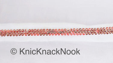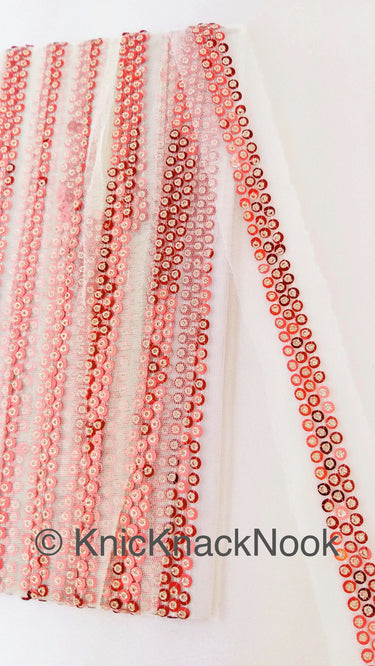This listing is for a stunning White Net Lace With Red / Pink and Gold Sequins Lace Trim.