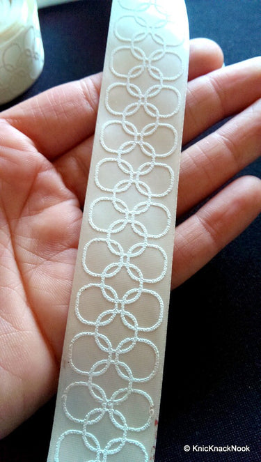 This listing is for a lovely Off White Satin Ribbon Trim With Circle Design.