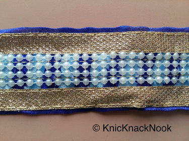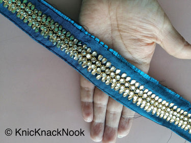 This listing is for a lovely Purple / Blue / Brown Fabric Trim With Silver And Gold Kundan Beads Work.