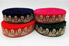 The embroidery on this trim is called Zardozi, an exclusive type of embroidery that is done by hand. Zardozi comes from two Persian words: zar or zarin meaning 'gold', and dozi meaning 'sewing'. Zardozi is a type of heavy and elaborate metal embroidery on a silk, satin, or velvet fabric base.