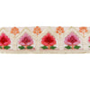 The embroidery on this trim is called Zardozi, an exclusive type of embroidery that is done by hand. Zardozi comes from two Persian words: zar or zarin meaning 'gold', and dozi meaning 'sewing'. Zardozi is a type of heavy and elaborate metal embroidery on a silk, satin, or velvet fabric base.