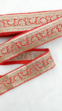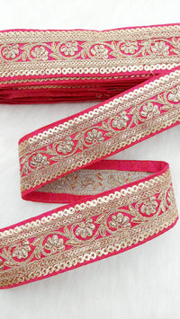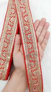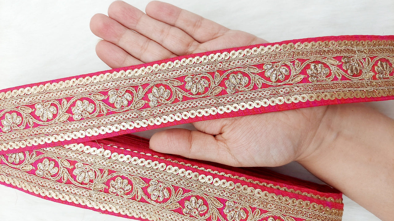 Art Silk Trim Gold Floral Embroidered Sequins Trim, Decorative Trim, Indian Sari Border