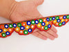 The embroidery on this trim is called Zardozi, an exclusive type of embroidery that is done by hand. Zardozi comes from two Persian words: zar or zarin meaning 'gold', and dozi meaning 'sewing'. Zardozi is a type of heavy and elaborate metal embroidery on a silk, satin, or velvet fabric base.