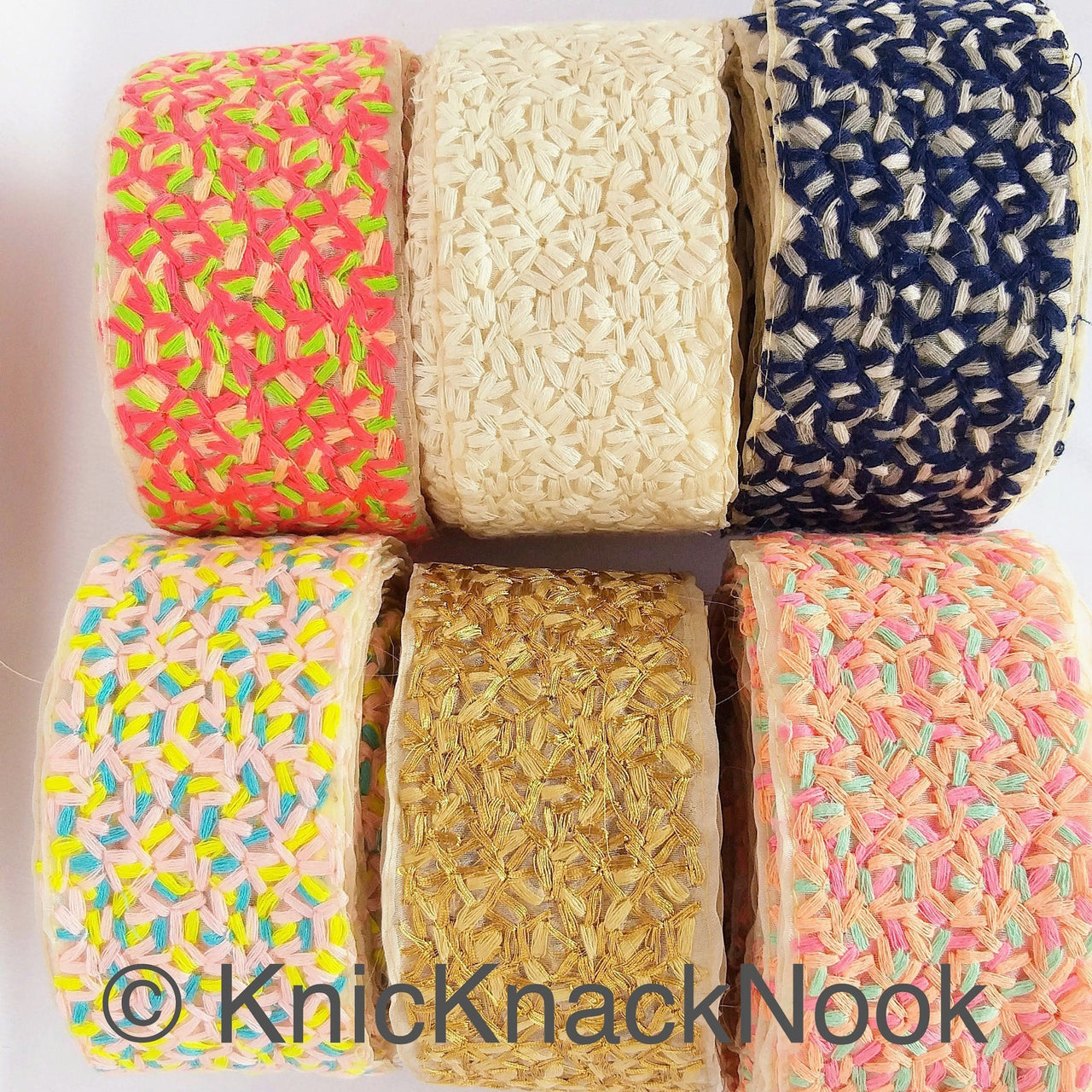 This listing is for a lovely Floral Embroidered Cutwork Trim, Yellow Embroidery, Beaded Floral Trim, Approx. 40mm Wide, Decorative Trim, Crafting Ribbon. This is a very unique fabric trim and a special KnicKnackNook find which you will not find anywhere else.