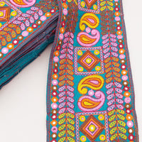 Blue Art Silk Fabric Trim, Paisley Embroidered Trim, Trim By The Yard