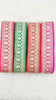 The embroidery on this trim is called Zardozi, an exclusive type of embroidery that is done by hand. Zardozi comes from two Persian words: zar or zarin meaning 'gold', and dozi meaning 'sewing'. Zardozi is a type of heavy and elaborate metal embroidery on a silk, satin, or velvet fabric base.