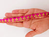 The embroidery on this trim is called Zardozi, an exclusive type of embroidery that is done by hand. Zardozi comes from two Persian words: zar or zarin meaning 'gold', and dozi meaning 'sewing'. Zardozi is a type of heavy and elaborate metal embroidery on a silk, satin, or velvet fabric base.