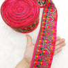 Peach Fabric Trim With Green, Fuchsia Pink, Red And Orange Embroidery and Gold Sequins