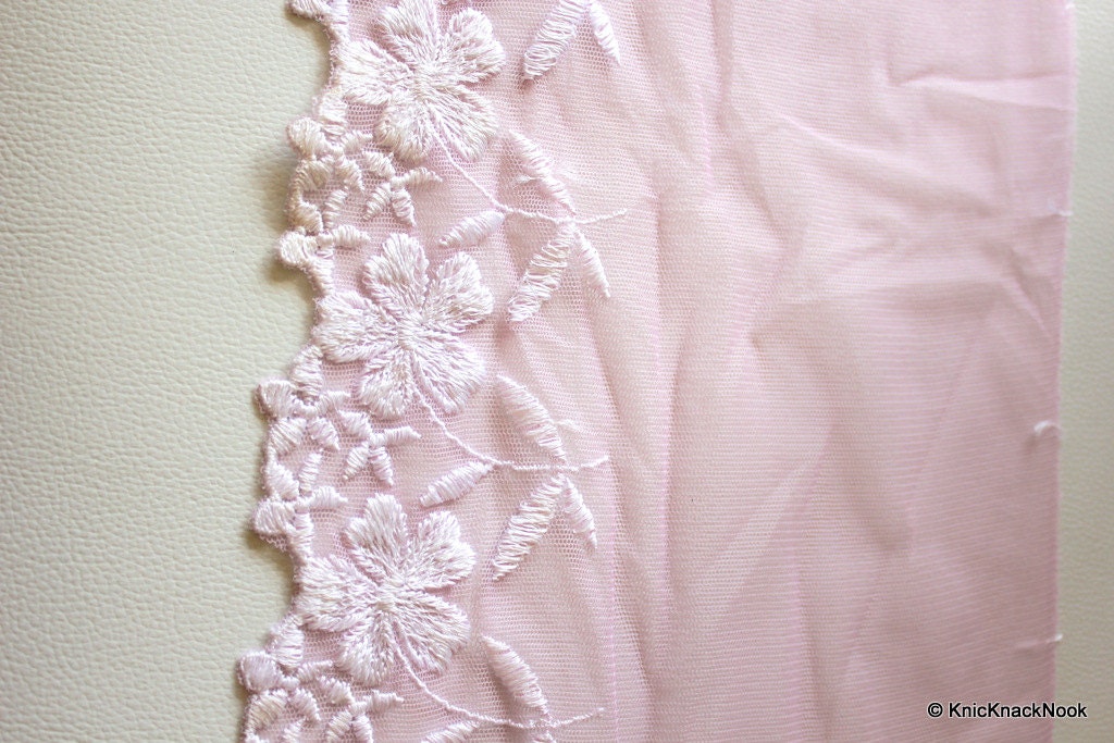 Pink Net Lace With White Flowers Embroidery Approx. 20cm wide - 030315L110