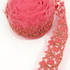 Red Net Lace Trim With Floral Embroidery And Gold Sequins, Sequinned Trim, Wedding Trim Bridal Trim