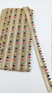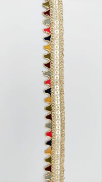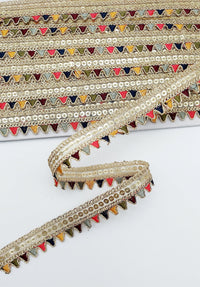 Sequin Fringe Trim, Multicoloured Tissue Fabric Sequin Border, Beige Shimmer Lace Trim