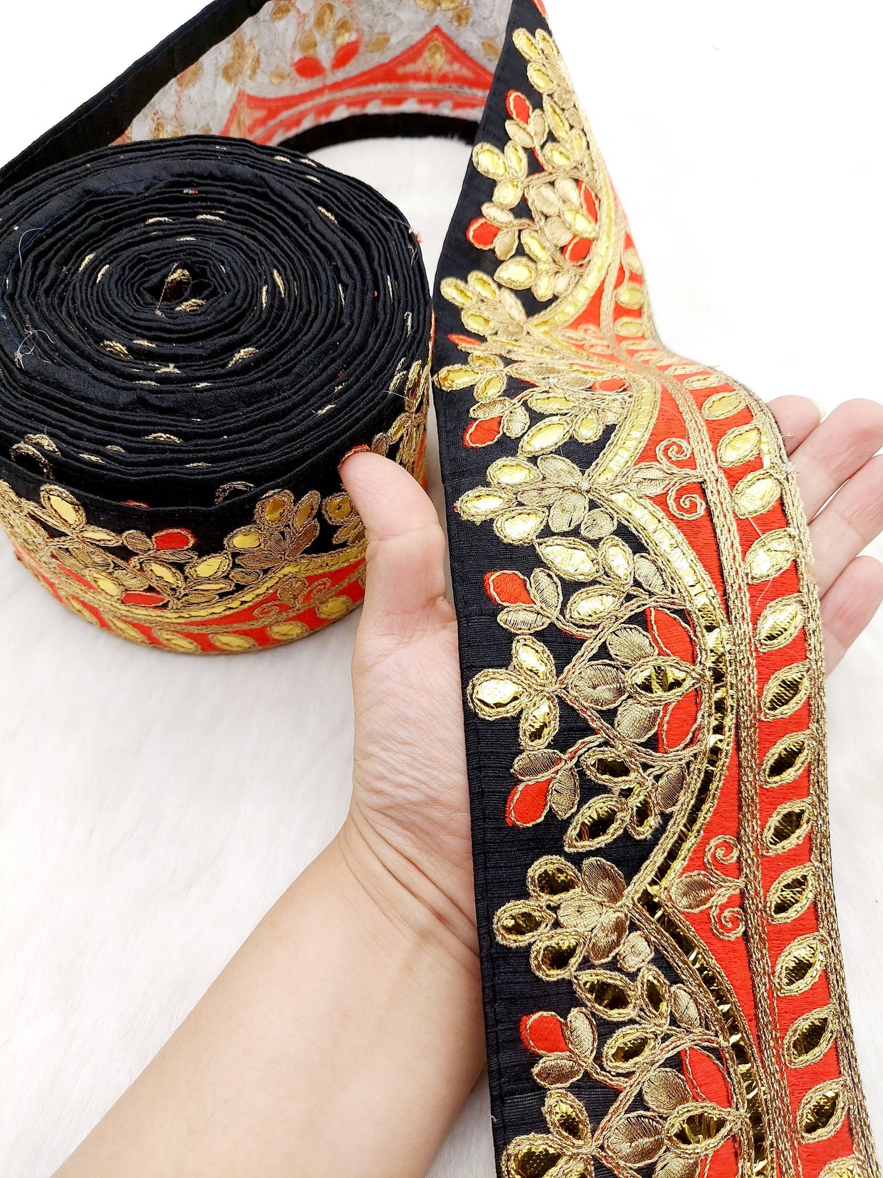 Silk Fabric Trim, Floral Gold Gota Patti Indian Sari Border Trim By Yard Decorative Trim Craft Lace