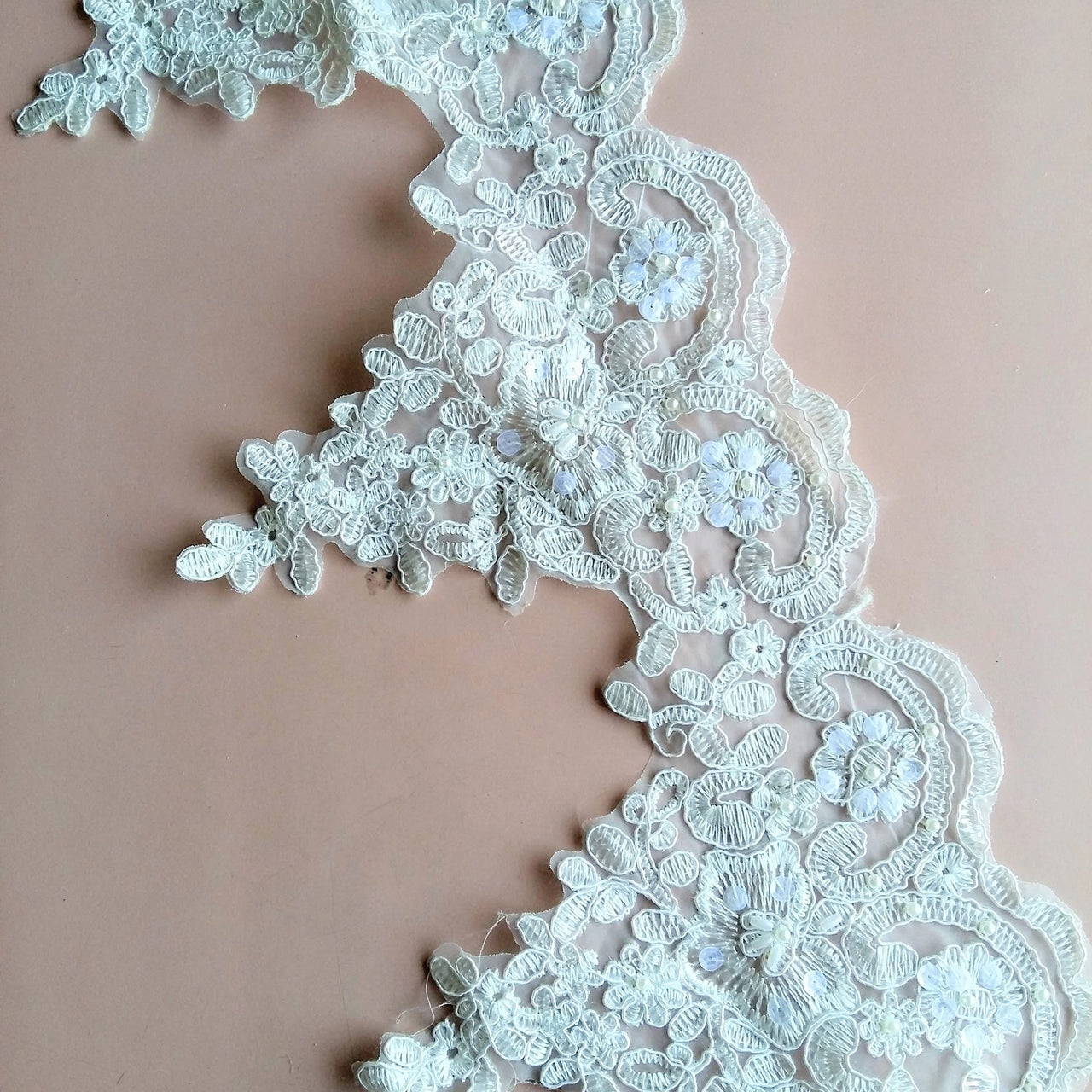 This listing is for a lovely White Pearl And Rhinestones Beads Net Lace Trim, Floral Trim, One Yard, Wedding Trim, Wedding Laces, Approx. 80mm Wide.