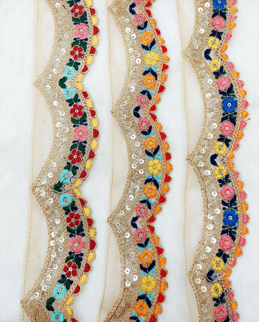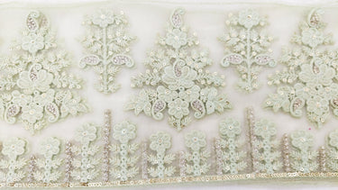 This listing is for 9 Yards Scallop Sequin Floral Border, Beige Shimmer Tissue Fabric Lace Trim Flowers Embroidery, Floral Sari Trimming, Decorative Trim.