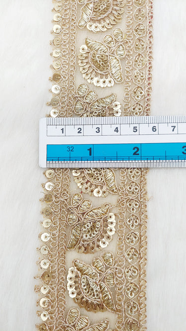 This listing is for a stunning Gold Sequins Trim 2 Yards Decorative Floral Embroidered Lace Sari Border Costume Ribbon Crafting Sewing Tape.