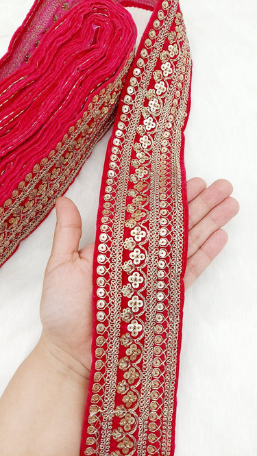 This listing is for a lovely Velvet Fabric Floral Embroidered Sequins Trim Indian Sari Border, Sequin Trimming, Sequinned Lace, Trim By 9 Yards.